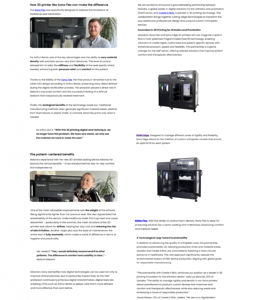 Develop and launch the identity of the new SONA 3D printer range, positioning it as an innovative and essential tool for orthotists and prosthetists. Build a cohesive visual and messaging strategy that reflects Qwadra’s expertise in digital O&P solutions.